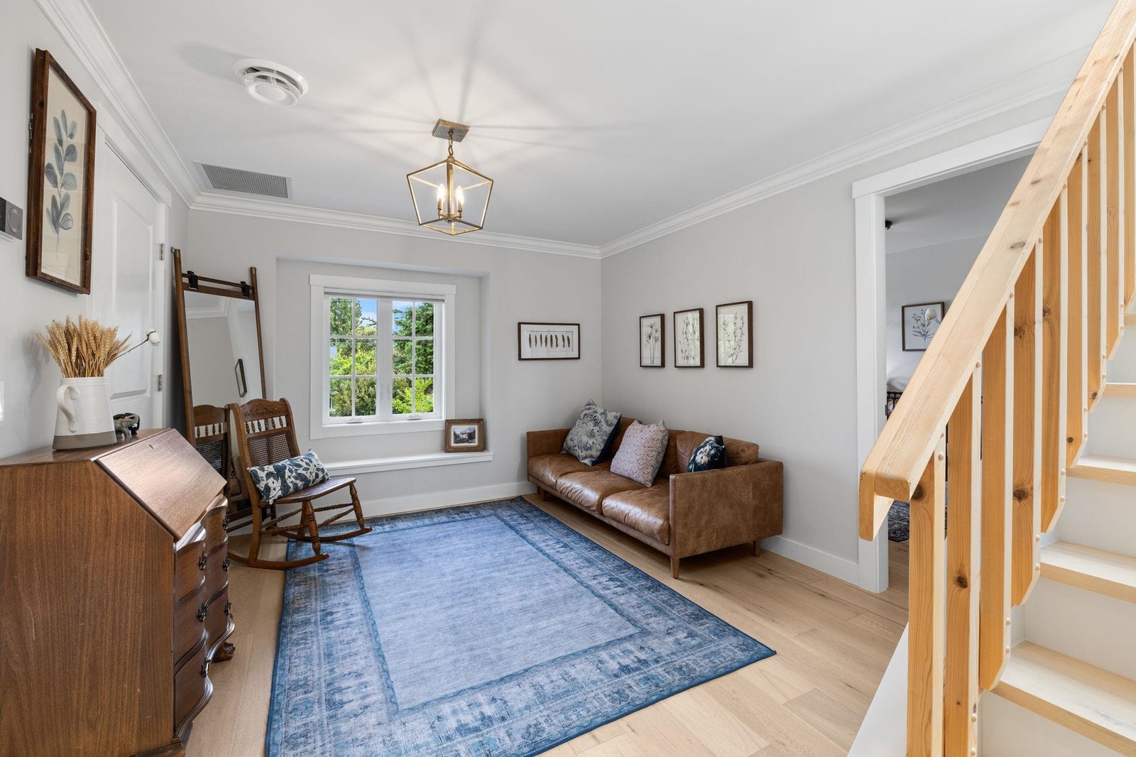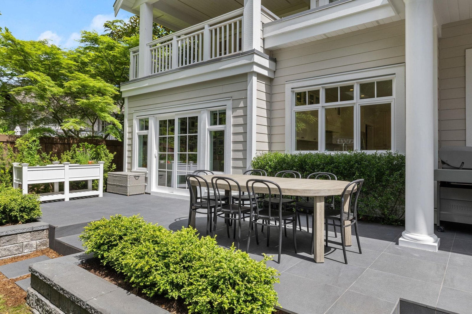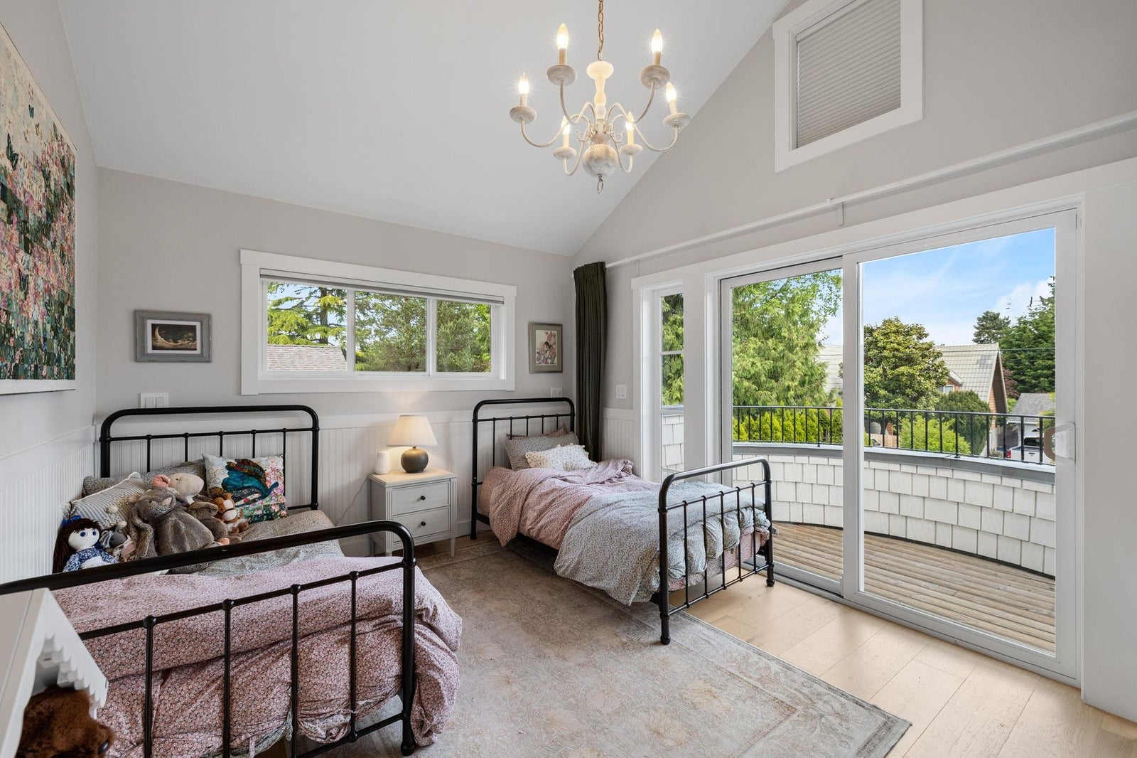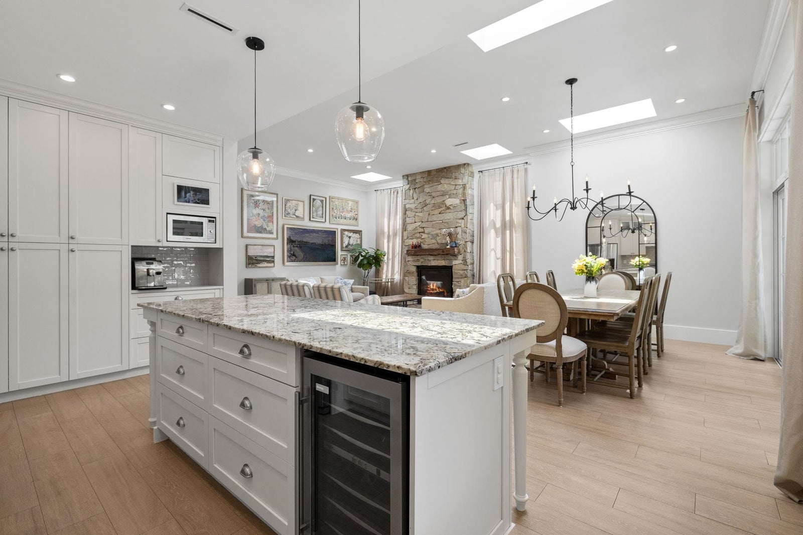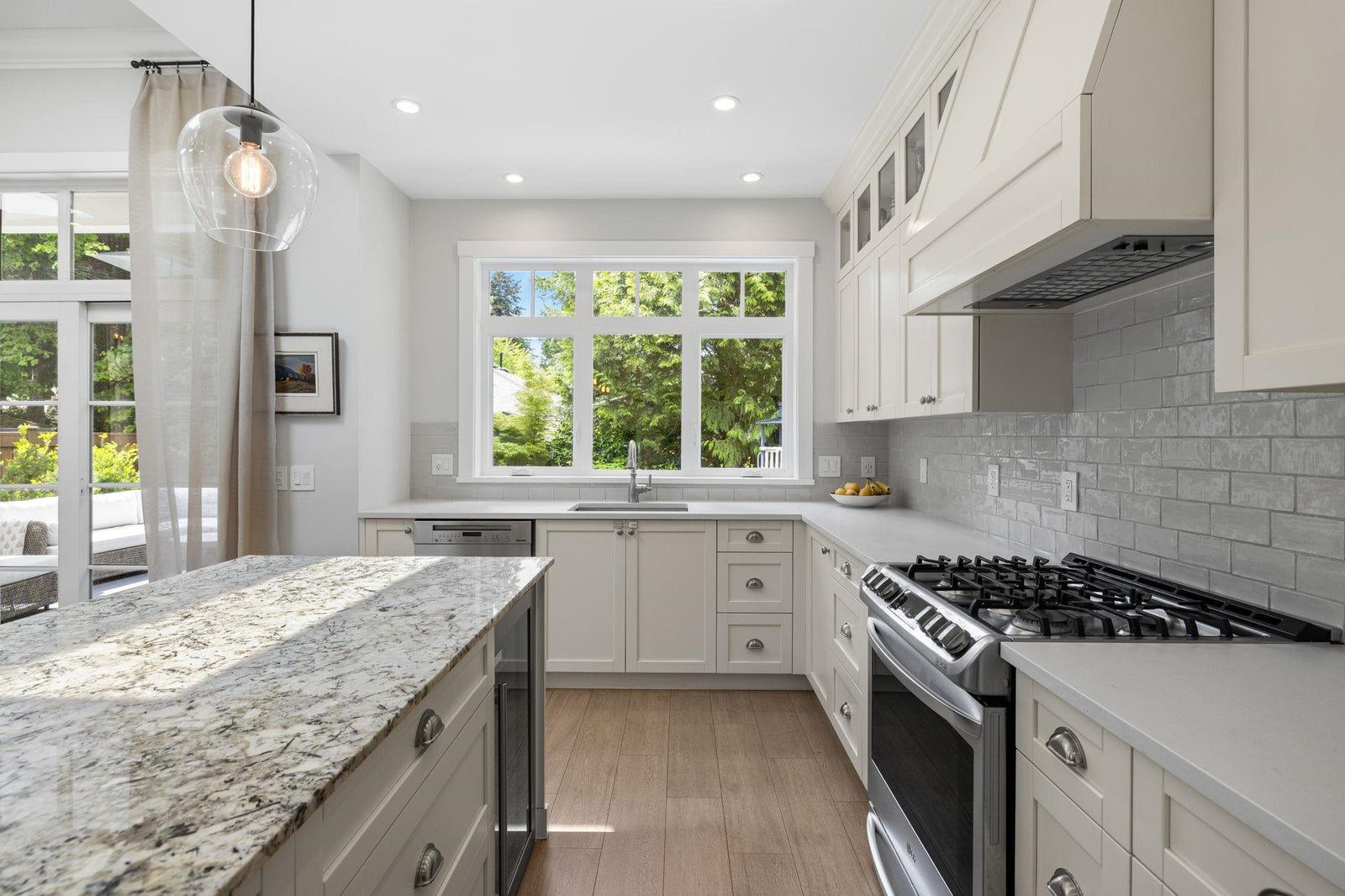 This one-of-a-kind residence offers exceptional craftsmanship and a seamless blend of indoor and outdoor living. Meticulously designed, this 2,731 sq. ft. home features an open-concept floor plan with soaring 11-ft ceilings, creating an airy and expansive atmosphere. Timeless stone finishes add elegance throughout. A large, covered deck off the living room extends the living space outdoors, perfect for entertaining or relaxing. Enjoy breathtaking ocean views stretching to White Rock from the private rooftop deck. The home offers two luxurious primary bedrooms, each with a spa-inspired ensuite. A striking floor-to-ceiling stone fireplace anchors the living area, while in-floor heating ensures year-round comfort. Downstairs guest/in-law suite with bathroom and separate entrance.