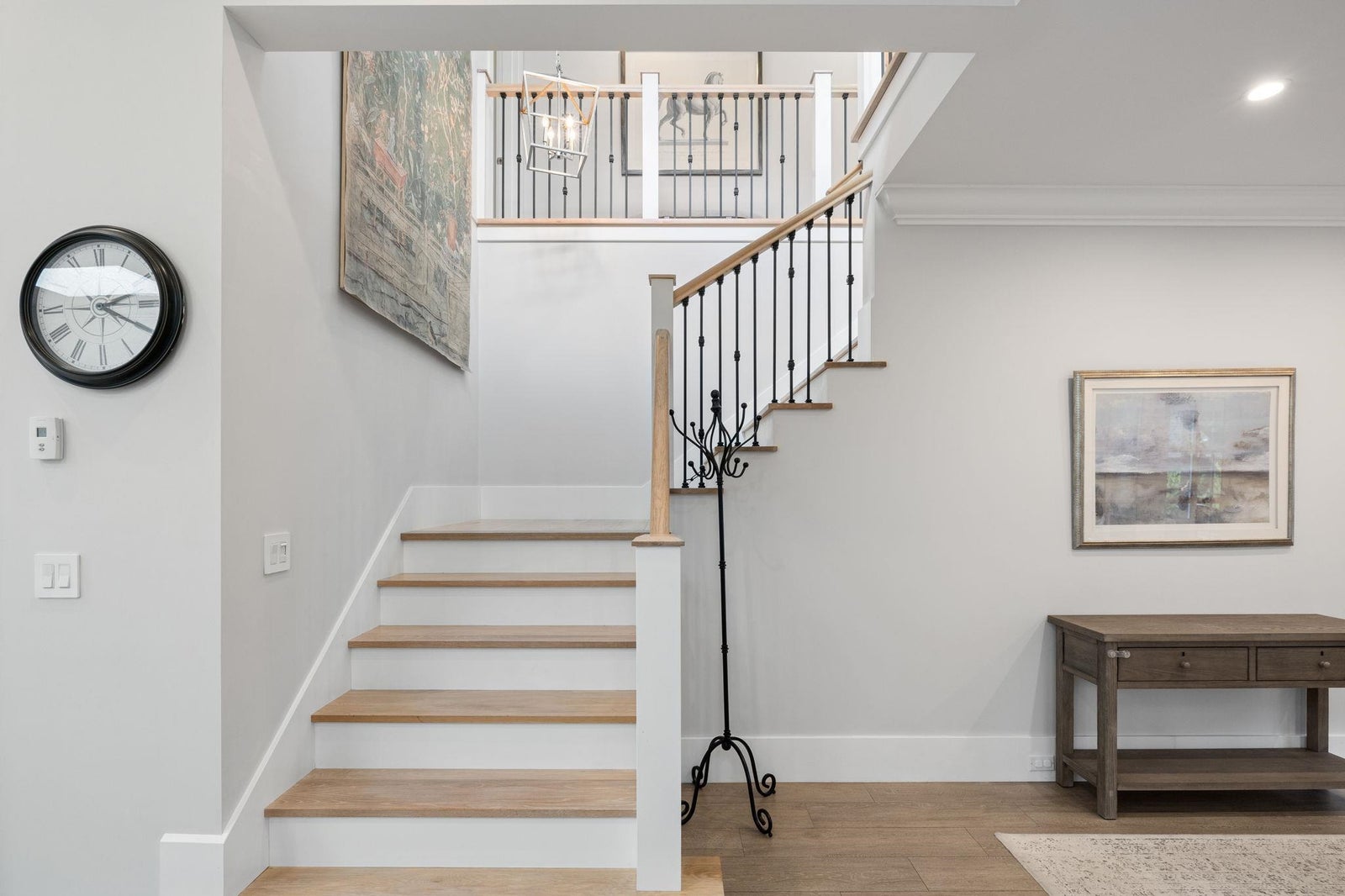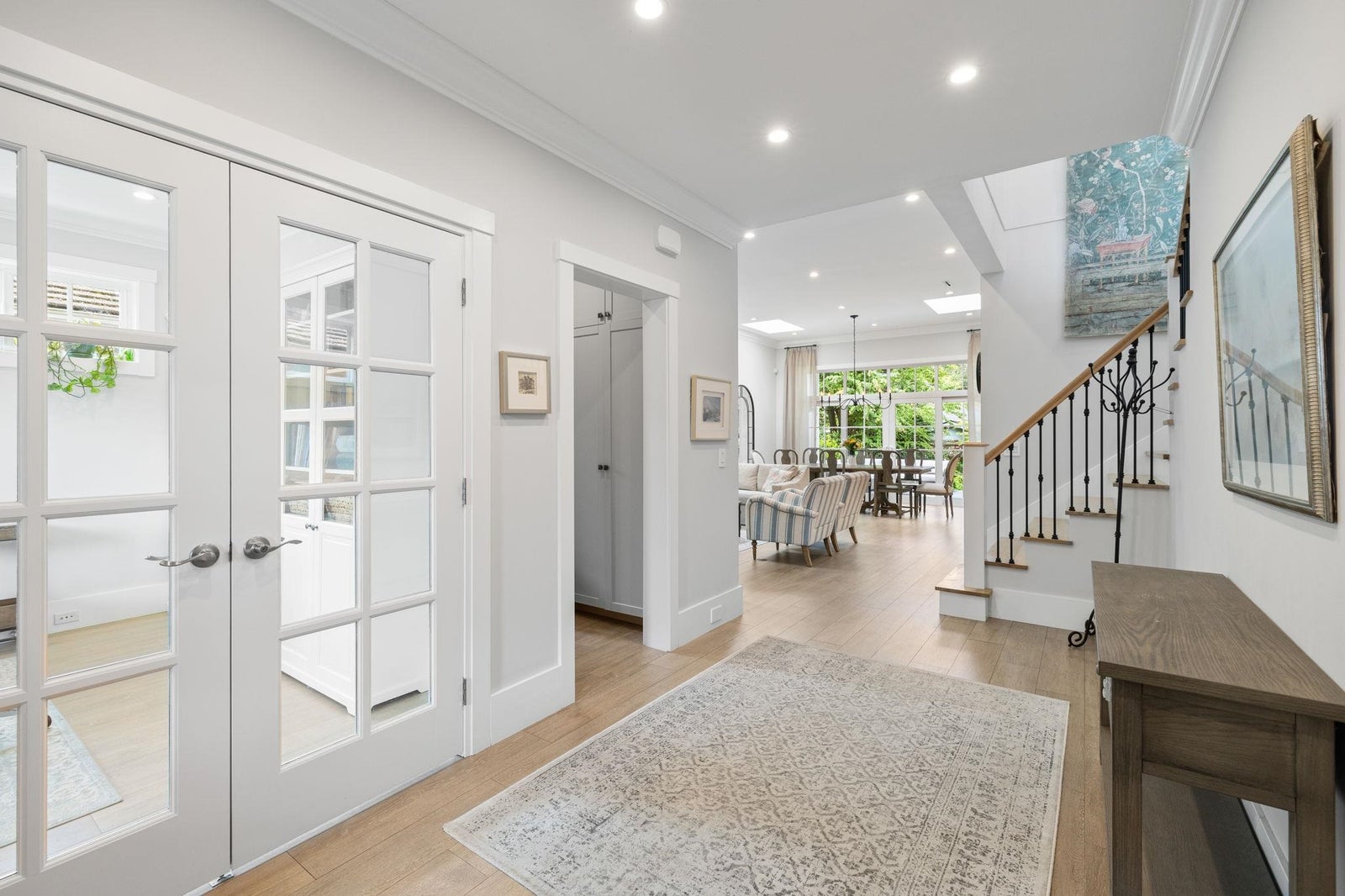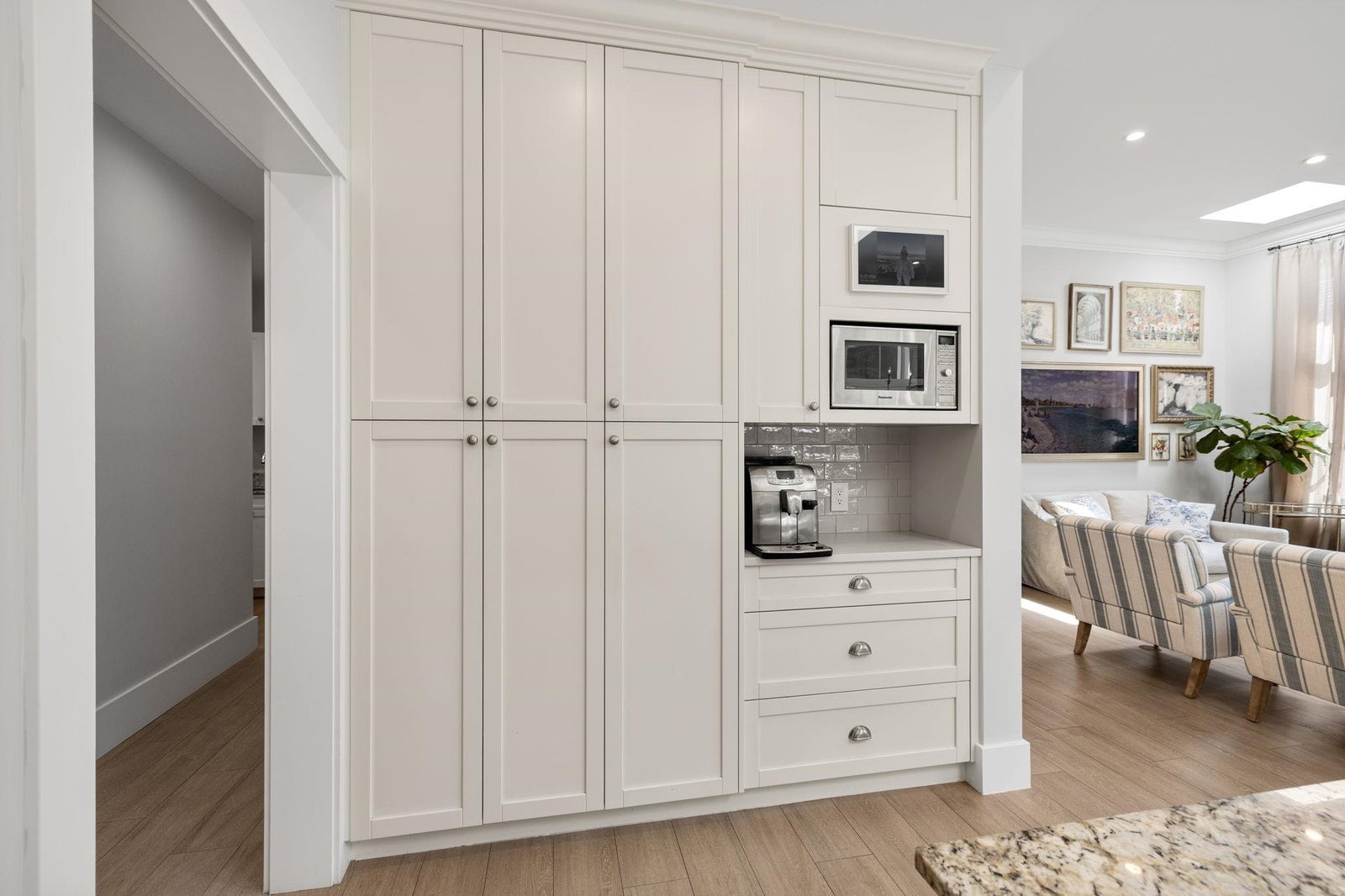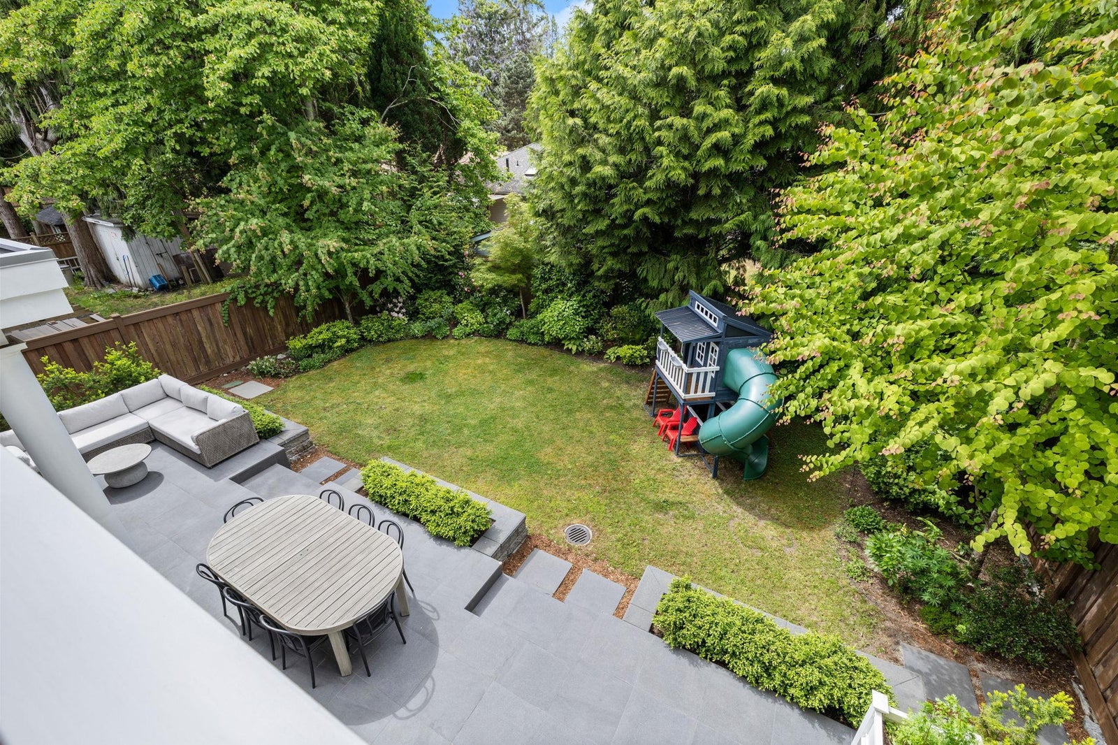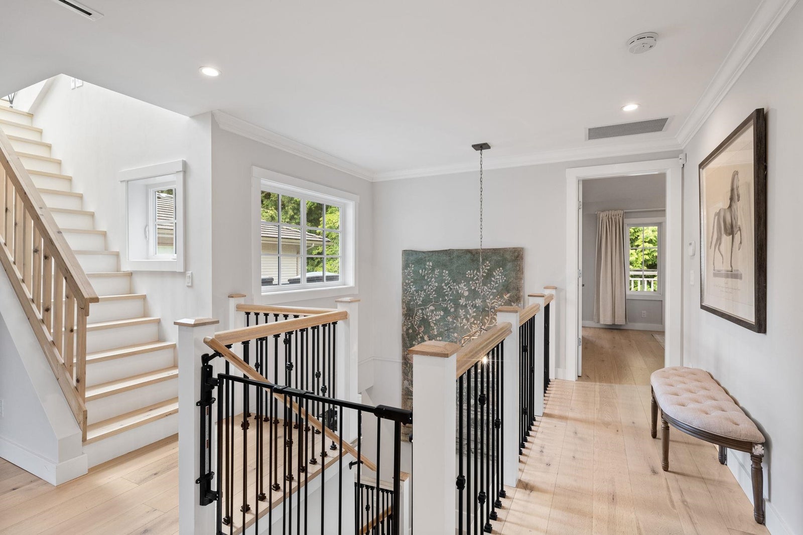 This one-of-a-kind residence offers exceptional craftsmanship and a seamless blend of indoor and outdoor living. Meticulously designed, this 2,731 sq. ft. home features an open-concept floor plan with soaring 11-ft ceilings, creating an airy and expansive atmosphere. Timeless stone finishes add elegance throughout. A large, covered deck off the living room extends the living space outdoors, perfect for entertaining or relaxing. Enjoy breathtaking ocean views stretching to White Rock from the private rooftop deck. The home offers two luxurious primary bedrooms, each with a spa-inspired ensuite. A striking floor-to-ceiling stone fireplace anchors the living area, while in-floor heating ensures year-round comfort. Downstairs guest/in-law suite with bathroom and separate entrance.